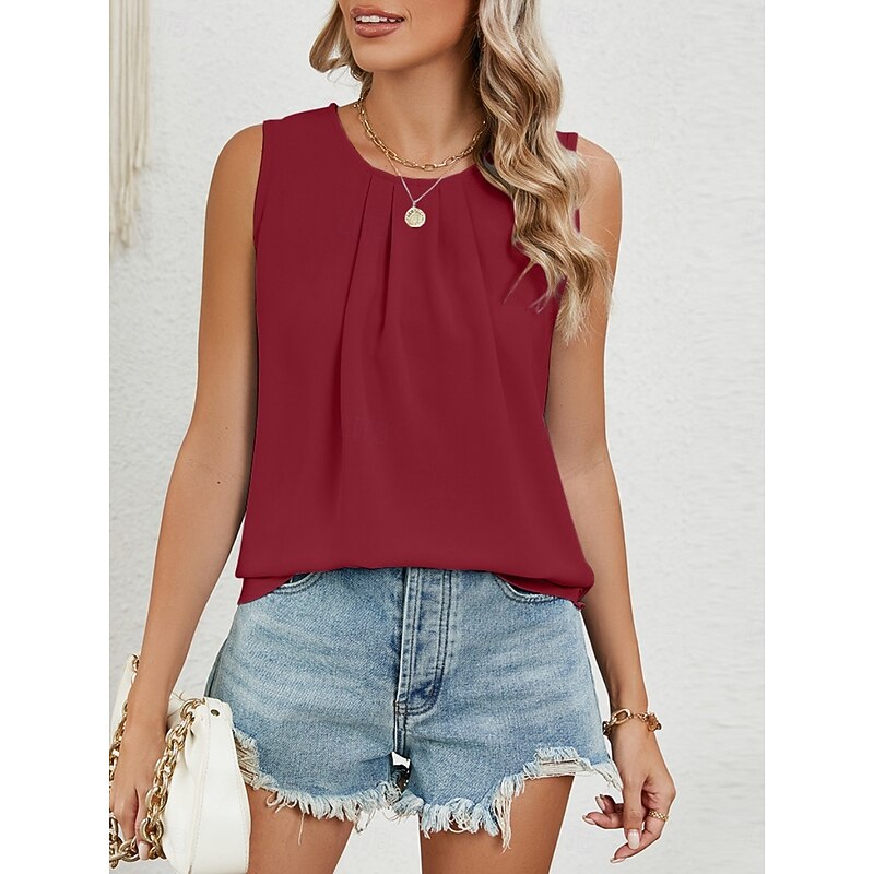 Why Choose Women's Shirt Blouse Solid Color trendy Casual Sleeveless Crew Neck Regular Tops Daily Black White Pink Wine Green Summer Spring?