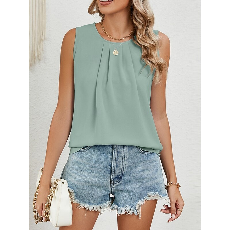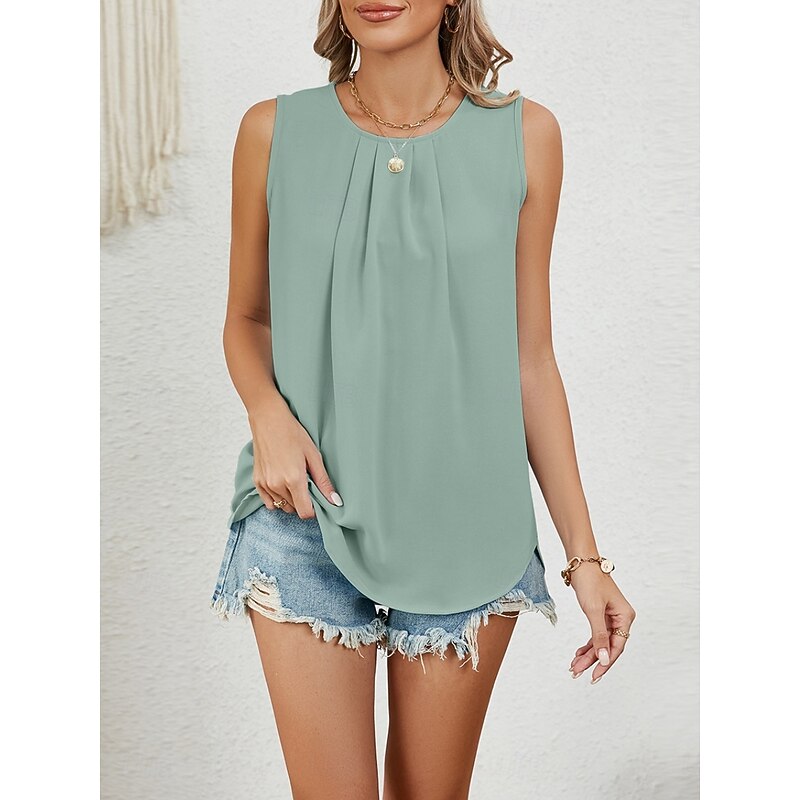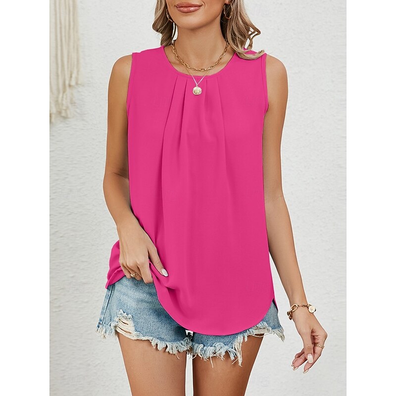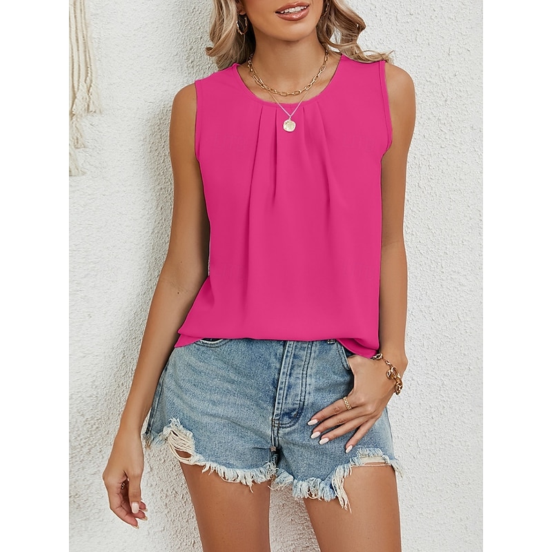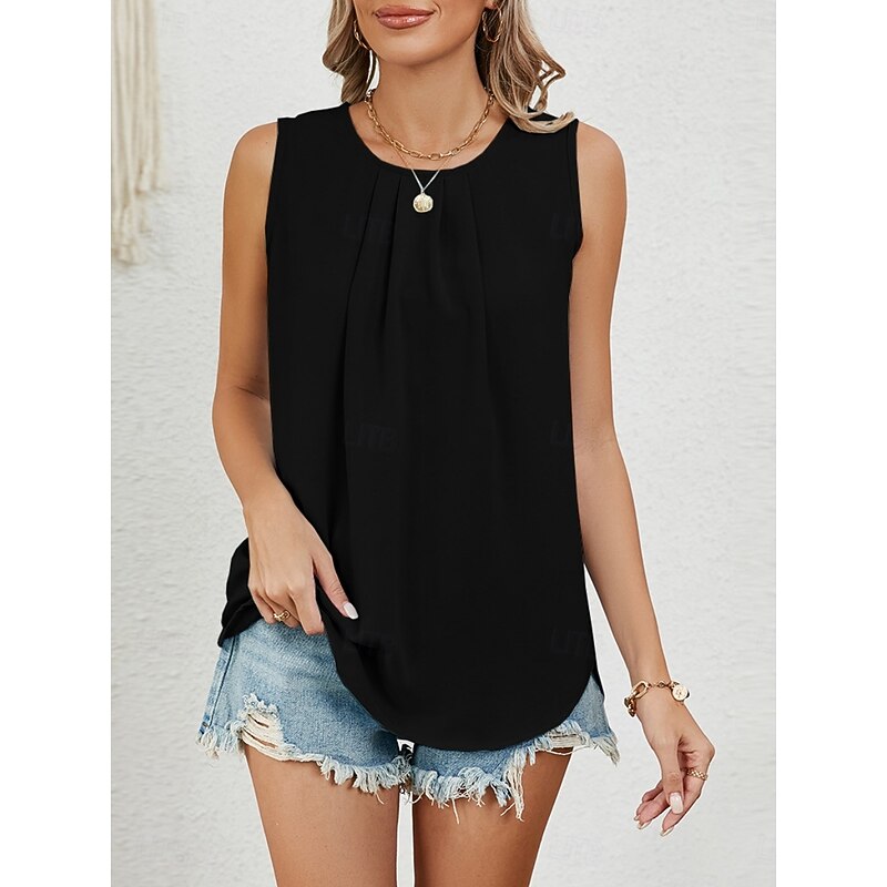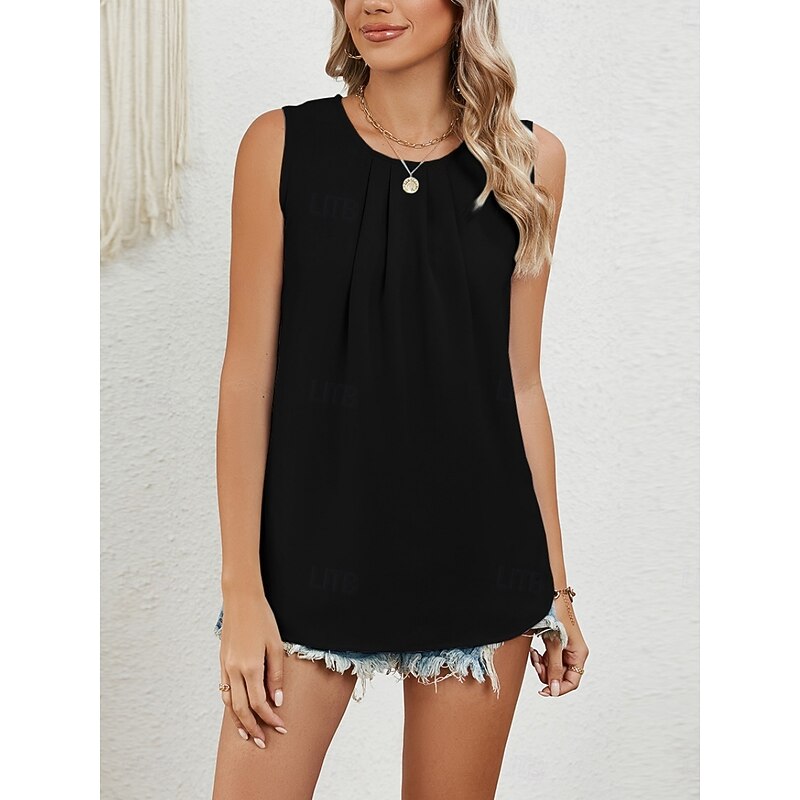 This Women's Shirt Blouse Solid Color contemporary Casual Sleeveless Crew Neck Regular Tops Daily Black White Pink Wine Green Summer Spring combines elegant design with practical functionality. Every detail has been carefully considered to ensure you get the best possible experience. The excellent construction means this product will serve you well for years to come.