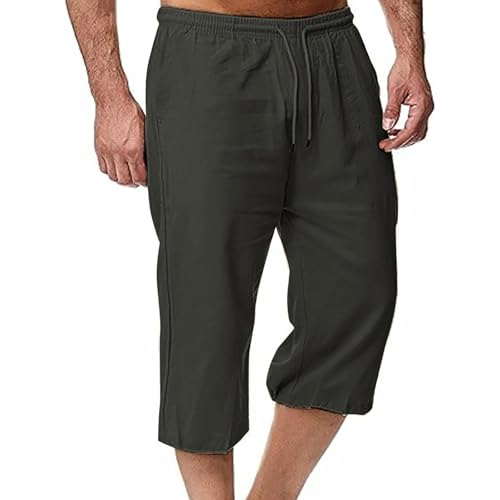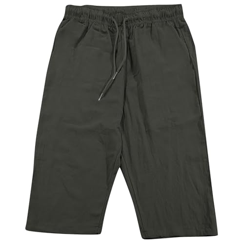 Cambkatl Men's Cotton Linen Capris Casual Summer Lounge Pants Lightweight Drawstring Elastic Waist Beach Pants with Pockets