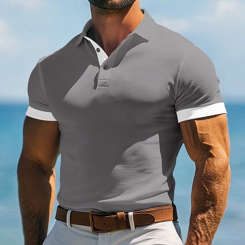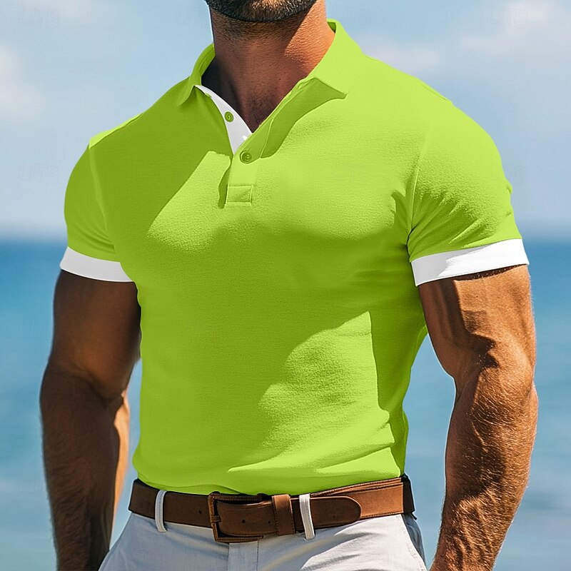 This Men's Golf Shirt Vacation Work Lapel Ribbed Polo Collar Short Sleeve Basic contemporary Color Block Patchwork Pocket Summer Spring Spring & Summer Slim Fit Navy Blue Blue Green Gray Golf Shirt combines elegant design with practical functionality. Every detail has been carefully considered to ensure you get the best possible experience. The excellent construction means this product will serve you well for years to come.