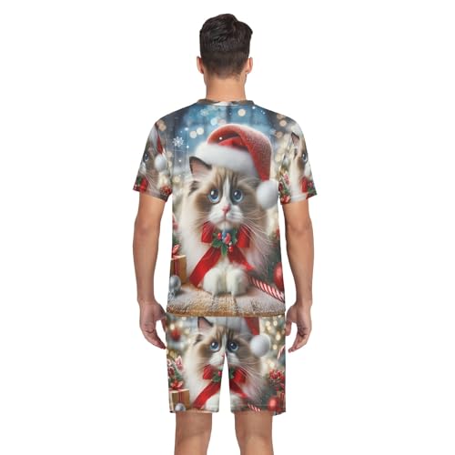 Mens Pajama Short Sleeve Pajama Set Lounge V Neck Nightwear 2 Pcs Pj Set, S-XXL