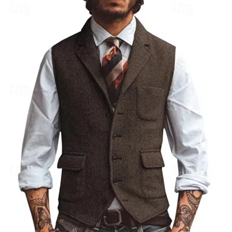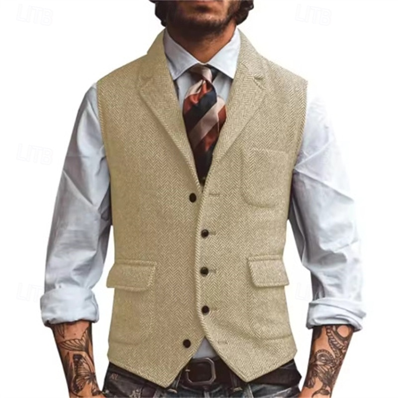 Why Choose Men's Vest Gilet Vacation Daily Date Fashion Casual Spring & Fall Buttons Pocket Polyester cozy Plain Single Breasted One-button Lapel Regular Fit Silver Dark Brown Black Champagne Vest?