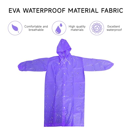Fabric type: 100% thicken EVA materialOrigin: Imported【One Size Fits Most】Poncho Length: 57.5 inches/146 cm, Chest: 53.5 inches/136 cm, Sleeve length: 29.5 inches/75 cm (sleeves can be rolled up when longer). This Rain Coat has a loose fit, snap closure, and is the right length for adults between 5.0 and 6.4 feet (155 and 195 cm) tall.【Premium & Reusable】The raincoats are Made of 100% thicken EVA material, non-toxic, no odor, breathable and soft, waterproof and eco-friendly. This reusable rain poncho with hood is tear resistant and quick dry can be used many times.【Update Design】Each rain poncho's long sleeves and drawstring hood design keep your arms, head, and neck dry in rain, and the wide hemmed cuff is practical for movement.【For Outdoor Activity】The adult rain poncho is extremely lightweight, small in size, and easily be folded up to carry in a backpack, luggage, and briefcase and take up no space. They can suitable for theme parks, Disneyland, rainy days, water rides, camping, outdoor concert, hiking, fishing, traveling, picnic, etc. Perfect for Outdoor activities and emergency use.【Risk-Free Shopping】Any inquiry, please do not hesitate to contact us, friendly and easy-to-reach customer service will be provided by us at any time. If you don't like our product, we will give you a refund or a replacement. Enjoy the risk-free purchase! Perfect for everyday use. first-class materials and excellent craftsmanship ensure long-lasting durability.