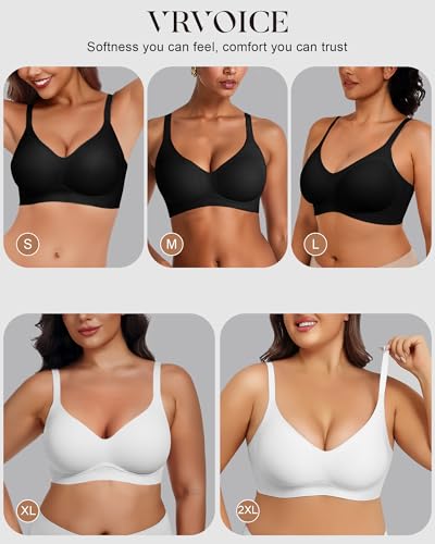 Fabric type: 66% Nylon, 34% SpandexCare instructions: Machine Wash or Hand WashOrigin: ImportedFur description: Please strictly refer to the size chart as the underwear runs small! Holds up in the wash—the most cushy bra ever.【Super Comfortable Bras】VRVOICE Wireless Seamless Bra is made of 66% Nylon and 34% Spandex, which is ultra soft, lightweight and stretchy. It's breathable and durable, bringing optimum comfort to your leisure time, keeping you cool and dry during extended wear and improving overall comfort【Supportive bras with Jelly Strip】 Our wire-free push up bras feature innovative “W” shaped jelly strip 3D molded cups support by the liquid jelly strip provides 360°round support for your breasts, creating a fully and natural chest. The wireless bra adds to to make relaxing as comfortable as possible, ensuring soft feeling, and maximum comfort all day long.Bralettes with removable padding, allowing to double as unlined minimizer bras when the padding is removed【Seamless Sports Bra】 The bras for women no underwire provide full coverage, support and lift. The V-neck design enhances your bust line. This everyday T-shirt bra is invisible, and non-see-through, hugging your chest perfectly.The wireless bra offer support and a perfect fit for most body shapes, from small to plus size, and cup sizes A to DD. The push-up pad creates a naturally round and full shape for younger women and provides comfort and support for women【Adjustable Straps】 These supportive bras for women feature adjustable, non-slip straps and an extension buckle with 4 rows of hook-and-eye closures for a custom fit. They ensure comfort and stability, preventing sagging or riding up. The U-back design and wide side wings help hide underarm bulge and back fat, offering extra support【Everyday Bra for Any Occasion】 Our soft wireless anti-sagging bralettes for women are perfect for any occasion. As everyday bras, t-shirt bras, sleep bras, yoga bras, sports bras, lounge bra and pregnancy bras, working out bras, exercise, jogging, hiking, dancing and relaxation at home and match different styles.Great gifts idea for your mother, wife, or girlfriend Perfect for everyday use. superior materials and excellent craftsmanship ensure long-lasting durability.