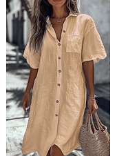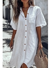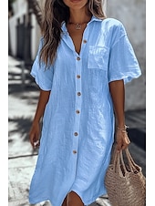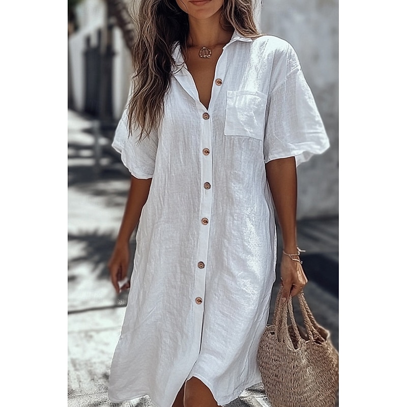 This Women's Shirt Cotton Linen Shirts Button Up Blouse Plain Basic contemporary Casual Short Sleeve Shirt Collar Long Tops Daily Holiday Going out Buttons Pocket White Yellow Light Blue Summer combines elegant design with practical functionality. Every detail has been carefully considered to ensure you get the best possible experience. The excellent construction means this product will serve you well for years to come.