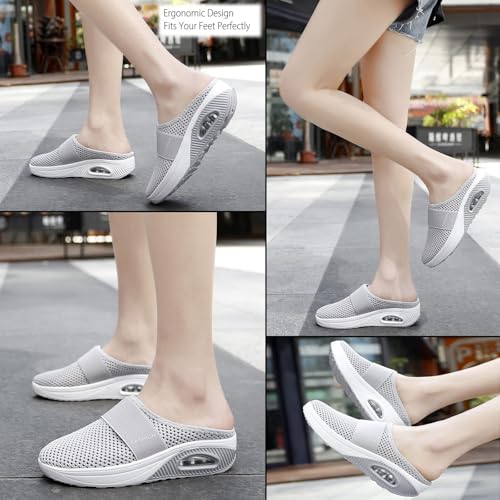 Mules for Women Backless Summer Slip-On Slides Air Cushion Orthopedic Shoes Arch-Support Diabetic Slippers Open Back Mesh Breathable Sandals 4