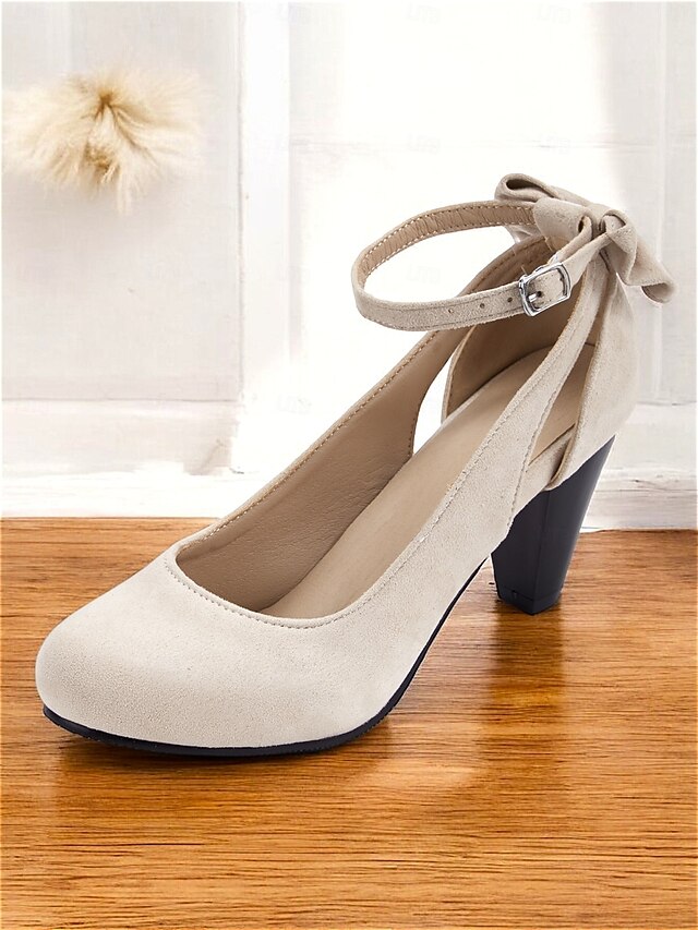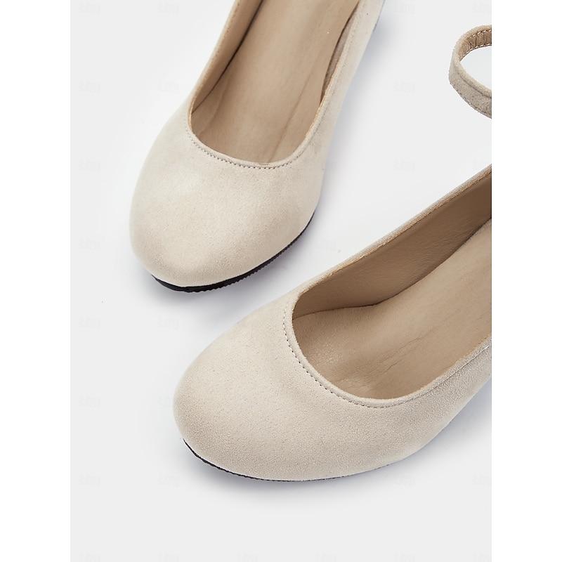 Highlights [Fabric & Material] : Expertly crafted from plush suede and lined with synthetic leather, these pumps offer a lavish feel and durability suitable for year-round wear, ensuring comfort with every step. [Silhouette & Fit] : Featuring a mid-height block heel and a rounded toe box, these shoes provide both stability and comfort, making them ideal for extended wear and versatile enough for various occasions. [Design Highlights] : The elegant design is accentuated by an adjustable ankle strap with a metal buckle, offering a secure fit while adding a touch of chic sophistication. The subtle beige suede finish complements any outfit with understated elegance. [Occasions] : Perfect for the office, weddings, and formal events, these pumps effortlessly elevate any ensemble. Whether dressing for a professional environment or a special occasion, they add an element of charm and style. [Size Notice] : Available in a range of sizes from US5.5 (EU35) to US10.5 (EU42), these pumps are designed to fit standard sizes; it is recommended to select your usual size for the best fit.