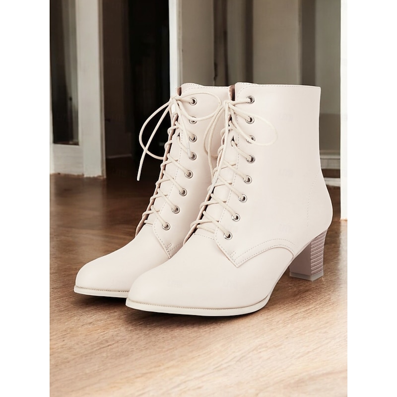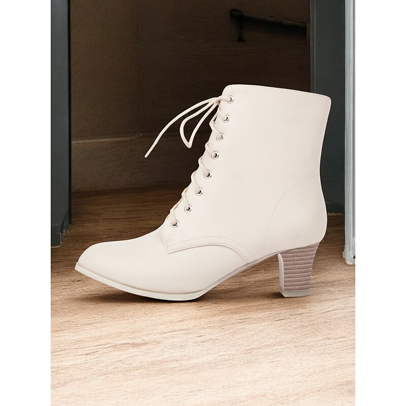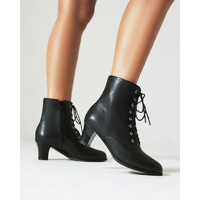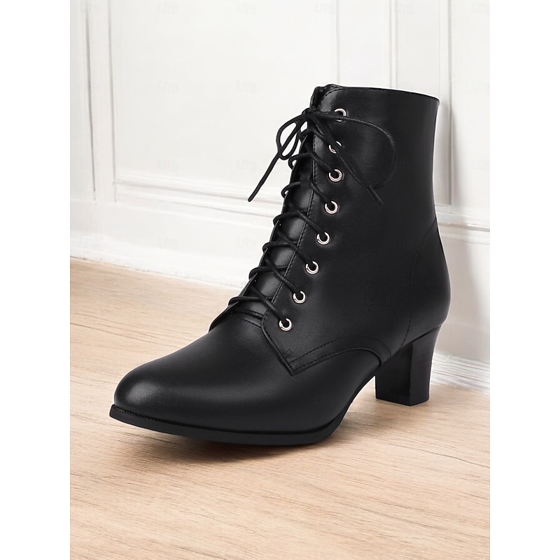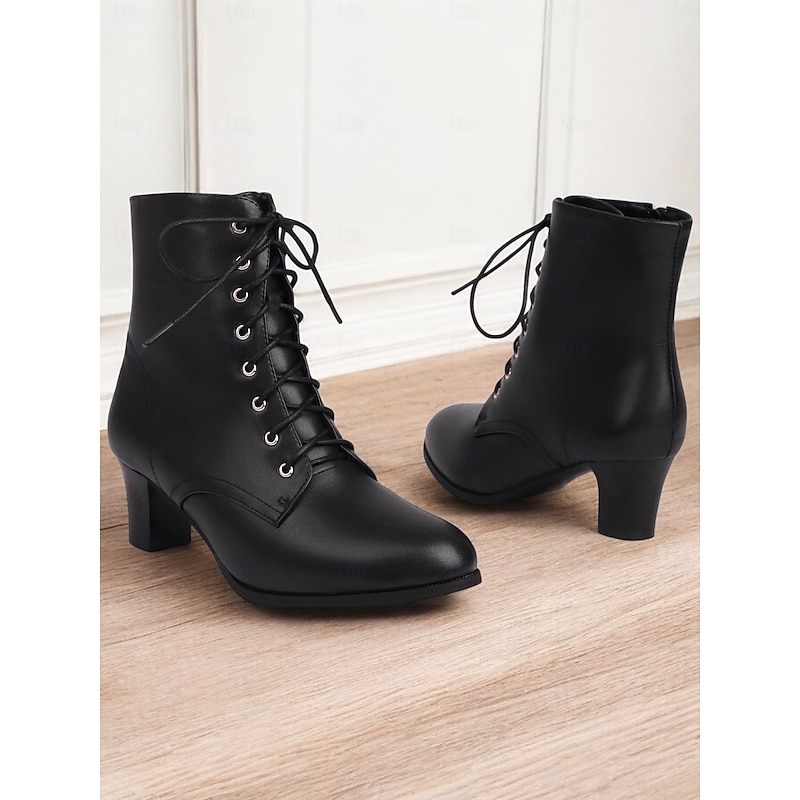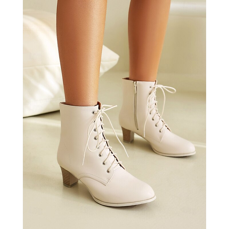 Highlights [Fabric] Crafted from high-quality PU for the upper material, these ankle boots are lined with cozy fleece, providing comfort and warmth suitable for cooler seasons like spring, fall, and winter. [Silhouette] These women's ankle boots feature a sophisticated and versatile aesthetic, designed to enhance any ensemble. With their chunky heel and mid-height build, they offer just the right lift without sacrificing stability, perfect for all-day wear and diverse styling. [Design Highlights] The traditional lace-up front paired with metal eyelet details adds a timeless charm, while the convenient zipper closure ensures easy on and off. The round toe shape and sturdy rubber outsole provide both style and practicality for everyday use. [Occasions] Ideal for daily wear and work environments, these boots seamlessly complement both casual and formal outfits. Whether you're aiming for a chic office look or a relaxed weekend style, they are a go-to choice for a variety of occasions. [Size Range] Available in a wide range of sizes from US5.5 to US10.5 (EU35-42), these boots are tailored to fit your usual size, offering a comfortable and secure fit for every wearer. Perfect for everyday use. premium materials and excellent craftsmanship ensure long-lasting durability.