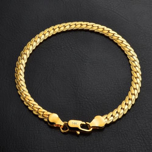 Material: GoldMetal type: Yellow GoldClasp type: Lobster ClawChain type: Cuban ChainGem type: No gemstone【Bracelet Introduction】This men's and women's Cuban bracelet is 7.2 inches long, 0.2 inches wide, and weighs 10.5 grams. The bracelet material is lead-free and nickel free, and has anti allergic properties. Friendly to sensitive skin, can be worn frequently in any occasion.【Unique shape】The flat whip bracelet is finely woven by hand, creating an eternal classic that still holds iconic value today. This bracelet is both exquisite and fashionable, showcasing a unique personality statement and instantly elevating the level of casual or formal attire.【Gift box packaging】YUBI Jewelry offers very exquisite packaging and shipping. The deep blue packaging box contains attractive jewelry and roses with a faint fragrance. It is high-end and elegant, and can be directly placed in the matching handbag to give to the important person, saving you packaging time【Store Promise】YUBI Jewelry provides a 90 day free return and exchange service. If you have any questions during the warranty period or after receiving the goods, you can contact us. Our professional team will give you a satisfactory answer within 24 hours of receiving the email【Best Gift】High class luxury jewelry is very suitable for giving to your husband/wife, father/mother, grandpa/grandma, brother/sisters or your friends on Christmas, Valentine's Day, birthday, Father's Day, Mother's Day, Thanksgiving Day and other special days or important occasions. They will certainly like it very much, and it is the best witness of your family, love and friendship Perfect for everyday use. first-class materials and excellent craftsmanship ensure long-lasting durability.