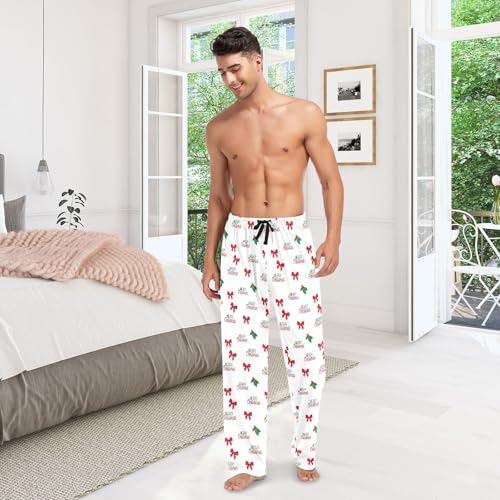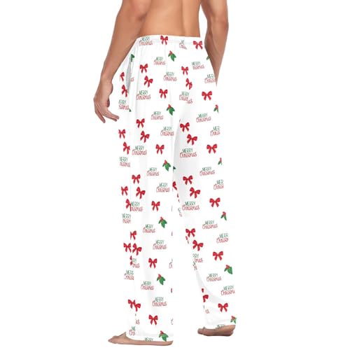 HOT ! Christmas Red Bows Men's Pajamas Pants Cotton Sleep Bottoms Pants Lounge Sleepwear - S