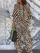 More information about Women's Vacation Fashion Pants Sets 3/4 Length Sleeve V Neck Geometric Print Vacation Daily Holiday Khaki Summer Regular Fit