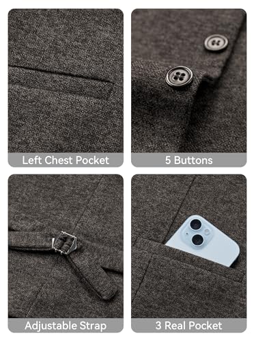 MAGE MALE Men's Suit Vests Business Formal Dress Tweed Vest Slim Fit Casual Waistcoat with 3 Real Pockets