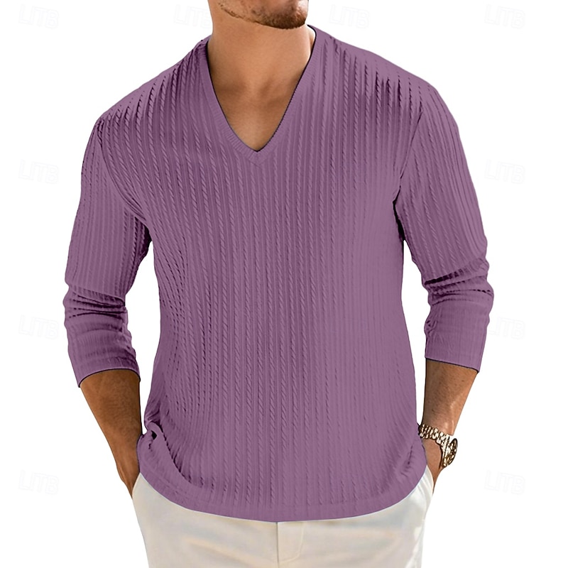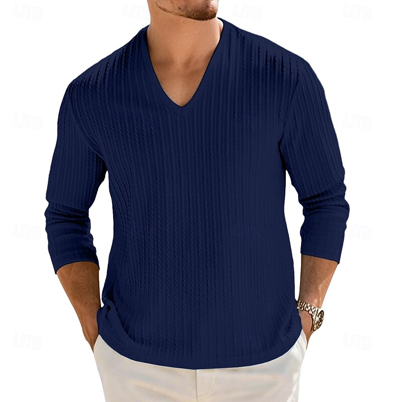 More information about Men's Men V Neck Rib-knit Tee Ribbed Knit tee Tee Top Long Sleeve V Neck Summer Spring Fall Solid Color Plain Jacquard Modern Casual Comfortable Buttons Basic Plain Home Street Casual White Navy Blue