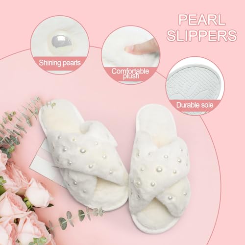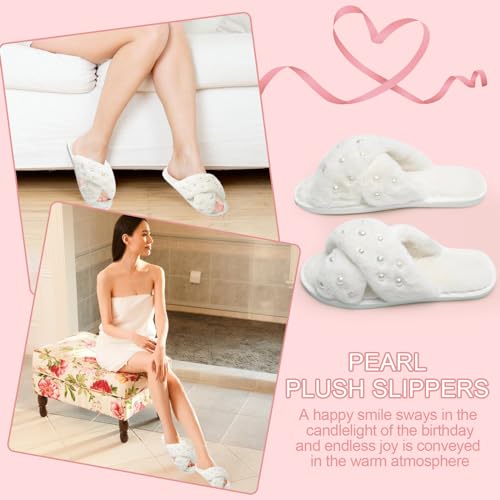 12 Pairs Women's Fuzzy Slippers Bulk Cross Band Open Toe Bridesmaid Slippers Plush Furry Slippers for Bridal and Bachelorette Party Gift