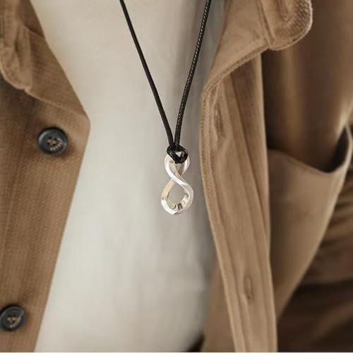 Item width: 0.8 inchesMaterial: Sterling SilverMetal type: Sterling SilverClasp type: Spring RingChain type: CordGem type: No GemstoneDESIGN: Elegant Möbius loop="loop" pendant crafted in pure sterling silver, featuring a continuous one-sided surface that creates an infinite loop="loop" effectMATERIAL: High-quality sterling silver construction with a brilliantly polished finish for maximum shine and durabilityVERSATILITY: Unisex styling makes this necklace a excellent accessory for any outfit or occasionSYMBOLISM: The Möbius strip design represents infinity and continuity, making it a meaningful piece of jewelryNECKLACE DETAILS: Comes with a black cord for a contemporary look, perfectly complementing the sleek silver pendant Perfect for everyday use. first-class materials and excellent craftsmanship ensure long-lasting durability.