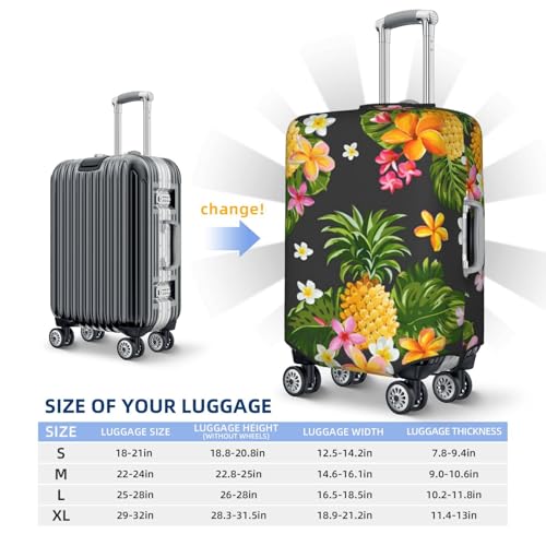 Available In Four Sizes: S (18-21 In), M (22-24 In), L (25-28 In), And Xl (29-32 In). Available In Four Sizes (S, M, L, Xl) To Fit Suitcases Ranging From 18 To 32 Inches, This Versatile Cover Provides Comprehensive Protection Against Dust, Scratches, And Wear.Built With All-Around Double-Stitched Seams, This Travel Luggage Cover Offers Exceptional Durability. The Stitching Ensures That The Cover Stays Securely In Place Throughout Your Journey, Protecting Your Suitcase From Dust, Scratches, AndCrafted From Thick, Elastic Material, The Tropical Pineapple Hawaiian Print Jbyjbx Suitcase Protector Fits Snugly Over Your Luggage. This High Elasticity Ensures That The Cover Remains Tightly Closed During Transit, Safeguarding Your Suitcase Against Accidental Openings And Potential Damage.Equipped With A Telescoping Handle Hole, Top Carry Handle Hole, And Hidden Zipper Handgrips On Both Sides, This Suitcase Cover Is Designed For Maximum Convenience. The Hidden Zippers Provide Easy Access While Maintaining A Sleek Appearance, Ensuring Your Luggage Looks contemporary And Protected.Simple To Install Just Pull Up The Handle, Slide The Cover Over Your Suitcase, Expose The Side Handles, Zip Up The Bottom, And Secure With The Fastener. The Washable Fabric Makes Cleaning A Breeze, Keeping Your Cover Looking Fresh For Every Trip.The Tropical Pineapple Hawaiian Print Jbyjbx Suitcase Cover Features Double-Sided Matching Prints That Add A Unique Touch To Your Luggage. These Stylish And Personalized Patterns Ensure Your Suitcase Stands Out From The Crowd, Making It Easier To Identify At Airports Or Baggage Claims. Perfect for everyday use. first-class materials and excellent craftsmanship ensure long-lasting durability.