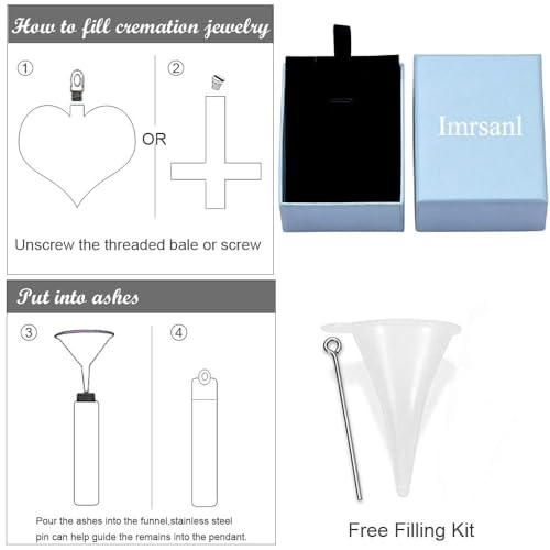 • ❤Package - Cremation keepsake jewelry have free 20" chain, exquisite velvet necklace box and filling kit, with our miniature funnel & sturdy steel pin, you can steadily & easily fill the heart.