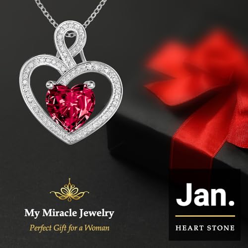 MMJ Platinum Plated Silver Heart Necklace Gift for Women Anniversary Wife Necklace with Heart Pendant Birthstone Necklace Gift for Her Birthday Eternity Jewelry