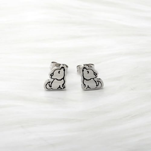 CHOORO Tiny Howling Wolf Earrings Animal Earrings Wolf Jewelry Gift For Her
