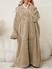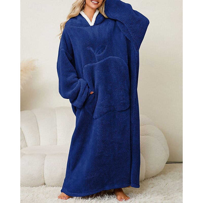 More information about Women's Loungewear Nightgown Onesie Warm Plush Fruit Pocket Home Long Sleeve Crew Neck Red Khaki Dark Blue Gray Fall Winter Tailored Fit