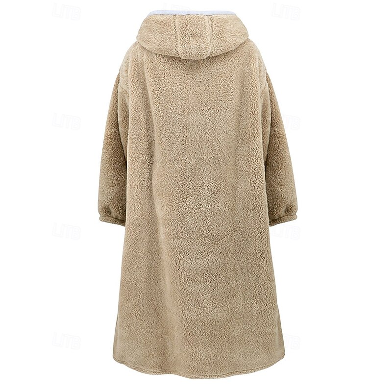 HOT ! Women's Loungewear Nightgown Onesie Warm Plush Fruit Pocket Home Long Sleeve Crew Neck Red Khaki Dark Blue Gray Fall Winter Tailored Fit