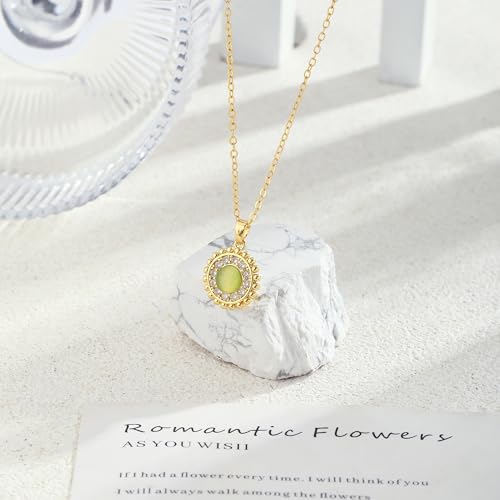 Green Necklace 14K Gold Plated Teardrop/Sunflower/Star/Evil Eye Green Gemstone Cubic Zirconia Pendant Necklaces For Women Jewelry Gifts