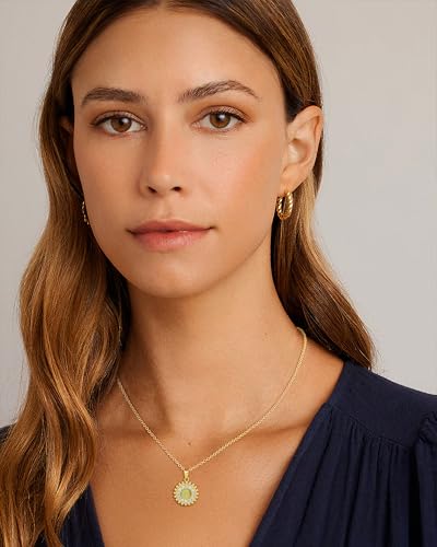 Item width: 7 centimetersMaterial: CopperMetal type: BrassClasp type: LobsterGem type: No GemstoneItem type name: Pendant NecklacesGreen Necklace Design: Make a statement with this stunning green necklace for women, featuring a vintage-inspired circular lace tag green pendant adorned with sparkling green cubic zirconia. The green and gold necklace combines rich emerald tones with lustrous 14K gold plating for a bold, eye-catching look that’s perfect for fashion-forward womenGreen Necklace for Women Material: Crafted from high-quality copper with 14K gold plating, this green pendant necklace offers lasting shine and durability. The intricate detailing and hand-set green cubic zirconia ensure a luxurious finish, making it a standout piece in any jewelry collectionAdjustable & Comfortable Fit: Designed with a 16.5+2 inch adjustable chain, this green stone necklace fits all neck sizes comfortably. The versatile length allows you to layer it with other gold necklaces for women or wear it solo for a sleek, polished lookGreen Jewelry Occasion: Whether dressing up for a special event or adding a pop of color to everyday outfits, this gold necklaces for women trendy is a must-have accessory. The green jewelry effortlessly elevates both casual and formal styles, making it a versatile choiceExquisite Gift Ready: Beautifully packaged in an elegant gift box, this gold pendant necklace is the perfect present for moms, sisters, or friends. Ideal for birthdays, Mother’s Day, or anniversaries, it’s a thoughtful way to show your love and appreciation Perfect for everyday use. first-class materials and excellent craftsmanship ensure long-lasting durability.