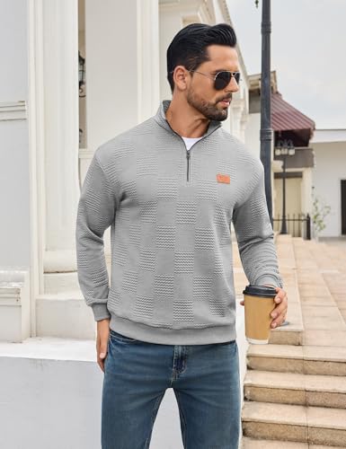 URRU Men's Quarter Zip Pullover Sweatshirt Mock Neck Long Sleeve Sweater Slim Fit Casual Polo Sweaters 4
