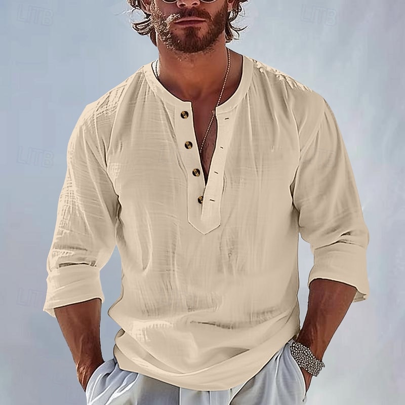 This Men's Shirt Popover Shirt Summer Shirt Beach Wear Plain Vacation Casual Black White Sky Blue Apricot Long Sleeve Band Collar Spring & Summer Clothing Apparel combines elegant design with practical functionality. Every detail has been carefully considered to ensure you get the premier possible experience. The top-grade construction means this product will serve you well for years to come.