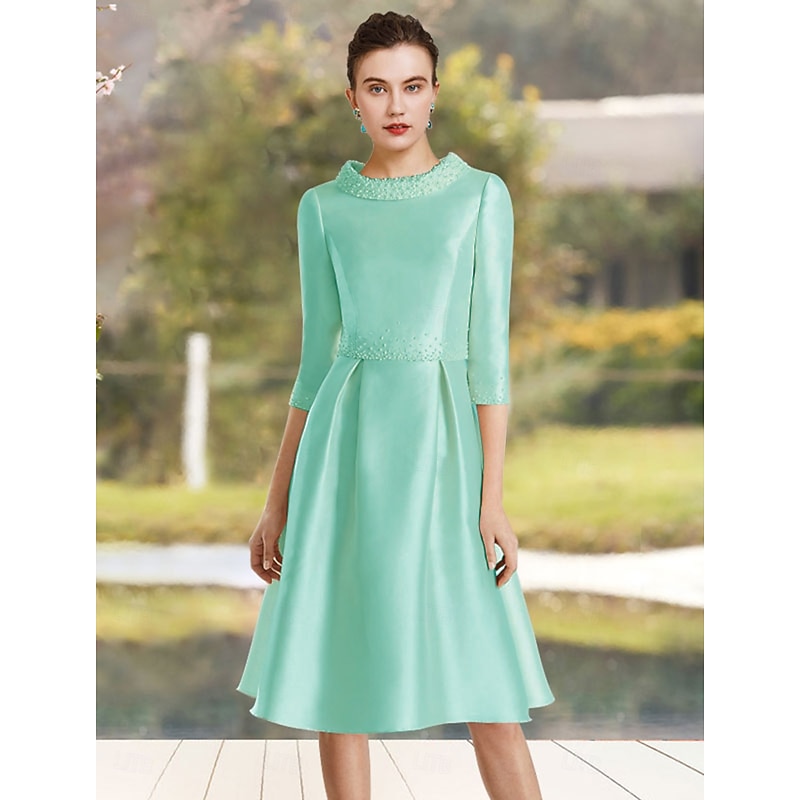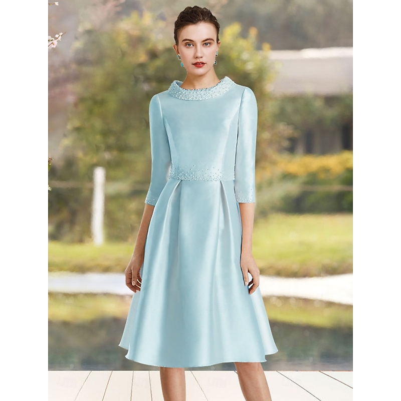 More information about A-Line Mother of the Bride Dress Wedding Guest Elegant Jewel Neck Knee Length Satin Half Sleeve with Beading Race Day Dress