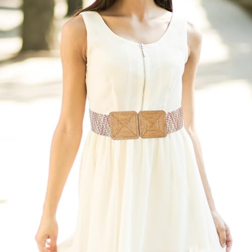 • 【Versatile Summer Accessories】: Women's wide stretch waist belts are fashionable and versatile, suitable for various such as beach parties, vacations, beach walks, daily life, etc. The exquisite woven pattern complements your summer clothing.