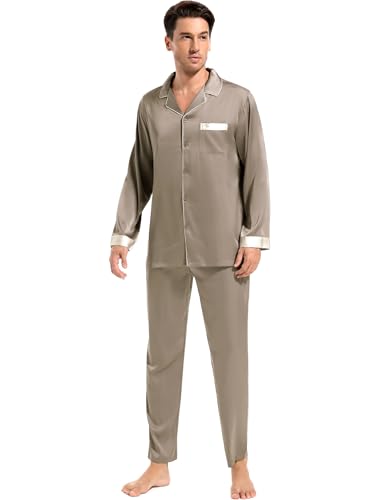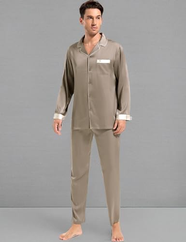 Men's Pajamas Sets Soft Silk Satin Sleepwear for Men Button Down Loungewear with Pockets 6