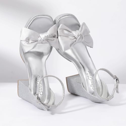 Mofri Showhow Platform Chunky Heels Women's Chunky High Heel Sandals Ankle Strap Open Toe Pump Bowknots Wedding Sandals for Wedding Bridal Party 1