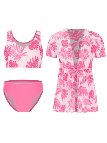 Choomomo Kids Girls 3 Piece Swimsuit Tropical Print Bikini Sets Kimono Set Swimwear Bathing Suits 4